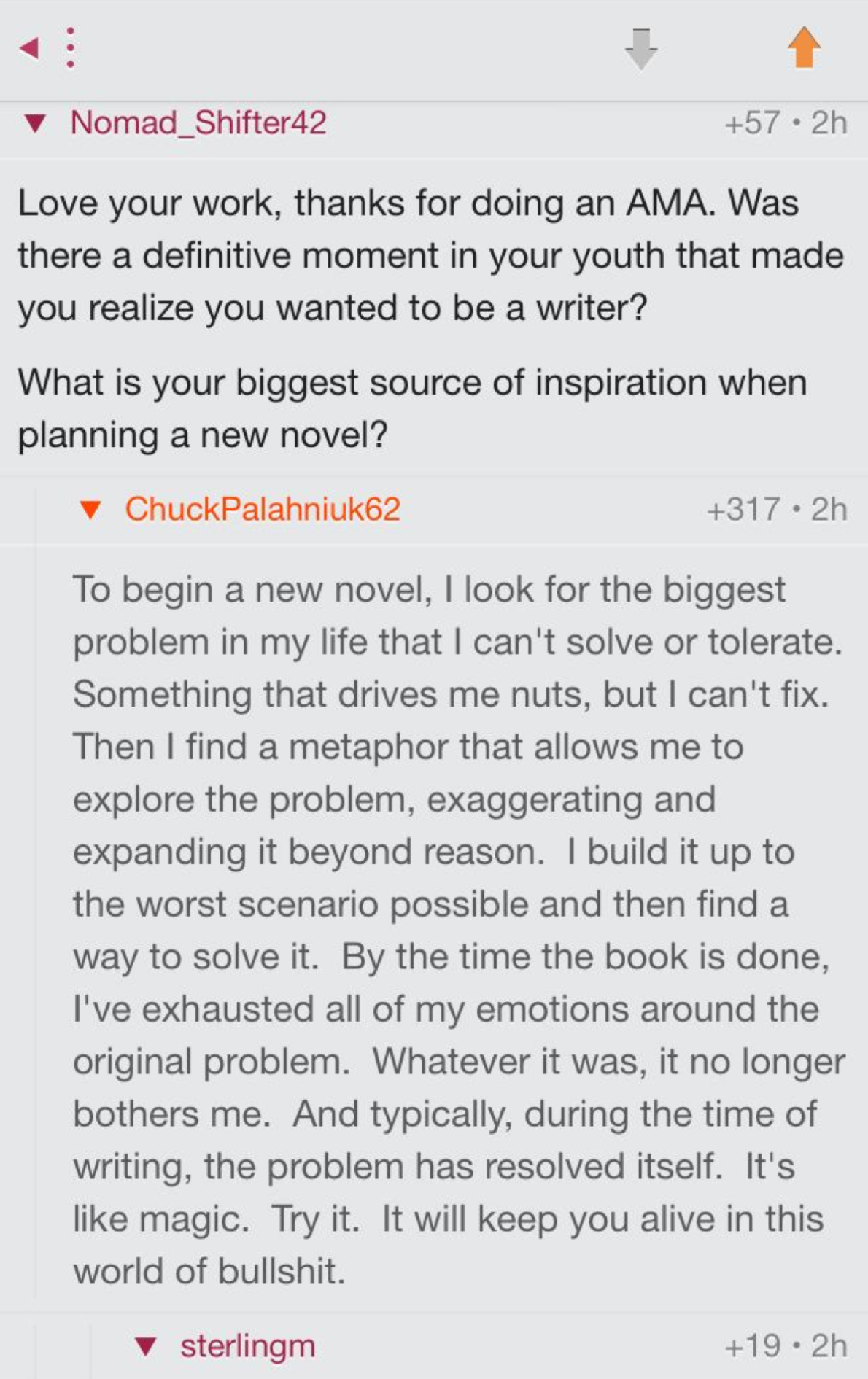 I also love this advice from Chuck Palahniuk: